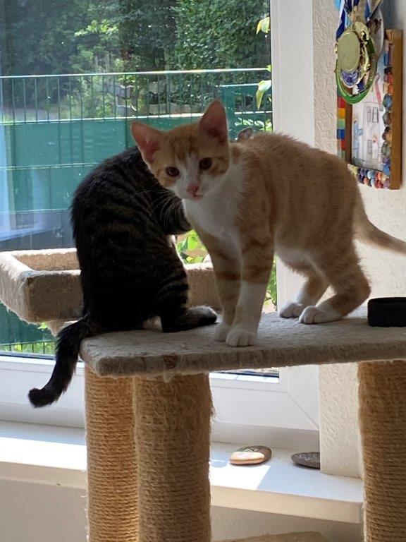 Auch er ist viel zutraulicher geworden, lässt sich ab und an streicheln und schläft gerne mit im Bett. Er mag alle anderen Hausbewohner/innen sehr gerne.